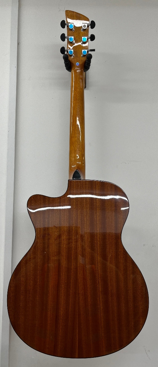 Mahogany Sapele Top • Mahogany Sapele Back and Sides • Enclosed Die-Cast Machineheads • Composite Technical Wood Fingerboard and Bridge • Gloss Finish