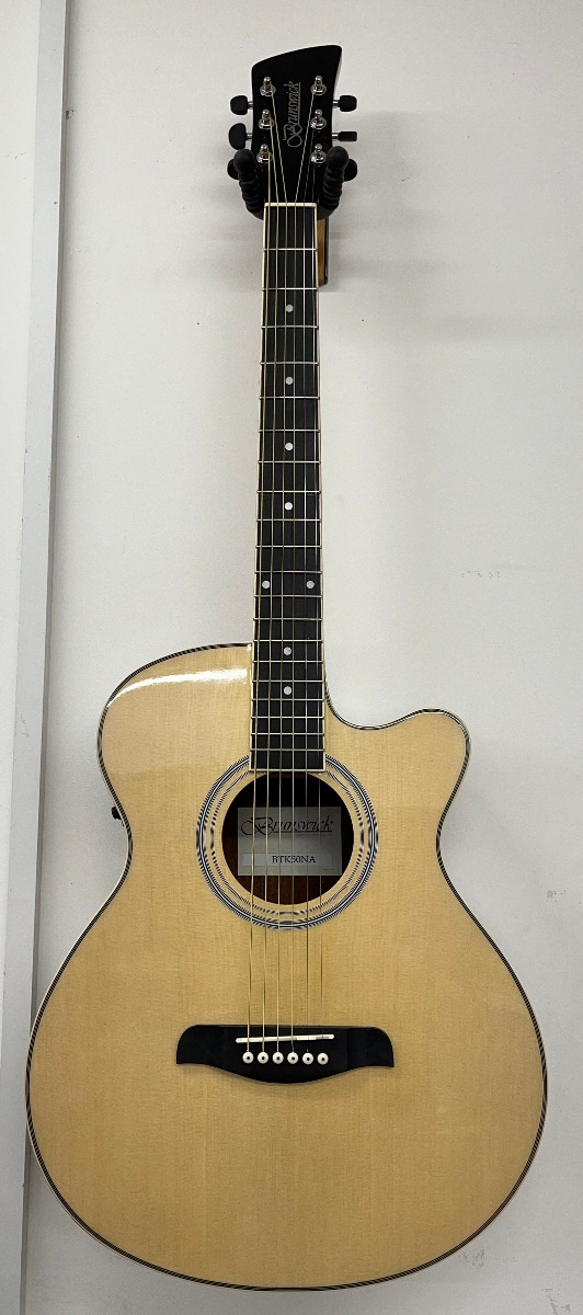 Brunswick’s incredibly popular BTK50 advanced, cutaway stage guitar is designed for just this purpose The spruce top and a mahogany body means you can be sure of a great unplugged tone; the quality machineheads will be easy to turn and easy to tune; the body will be comfortably contoured and fixing a guitar strap will be simple too.