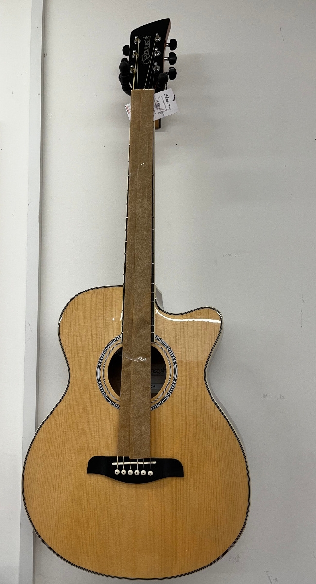 Spruce Top • Sapele Back and Sides • Enclosed Die-Cast Machineheads • Composite Technical Wood Fingerboard and Bridge • Gloss Finish • Great Colour Choices • Pickup and Preamp with 3 Band EQ and integrated tuner.