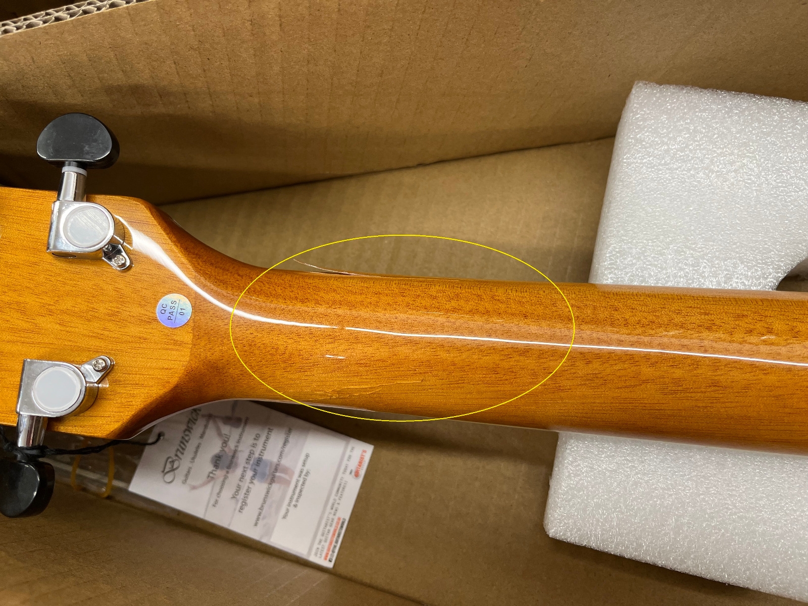 Cracked neck that will need a repair.