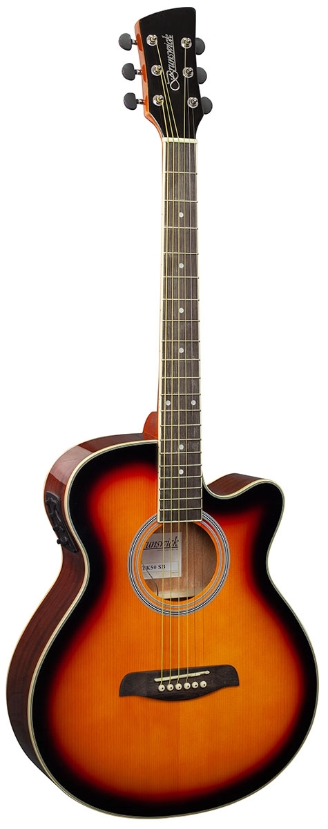 Brunswick’s incredibly popular BTK50 advanced, cutaway stage guitar is designed for just this purpose The spruce top and a mahogany body means you can be sure of a great unplugged tone; the quality machineheads will be easy to turn and easy to tune; the body will be comfortably contoured and fixing a guitar strap will be simple too.