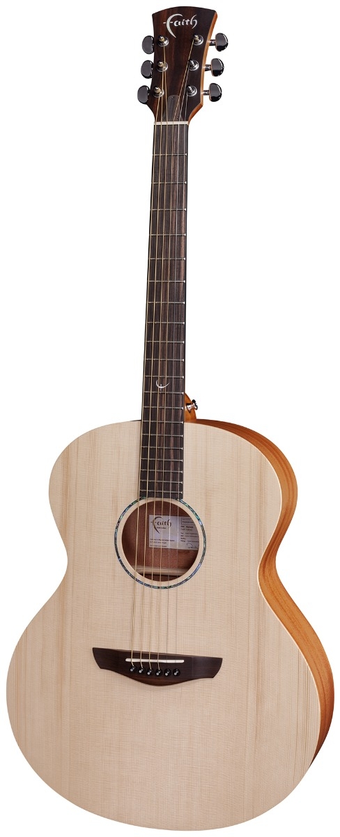 The Spruce top and Mahogany body of each of the Faith Naked instruments is 100% solid tonewood - in keeping with all other Faith series. However, the cosmetics and non-essential dressing has been stripped away, leaving the guitars in their natural, Naked state. Satin finished all over, the tonewood is almost entirely unrestricted in its resonant movement, so the tone delivered is far beyond what is normally expected at this price level. Visit www.faithguitars.com for more info