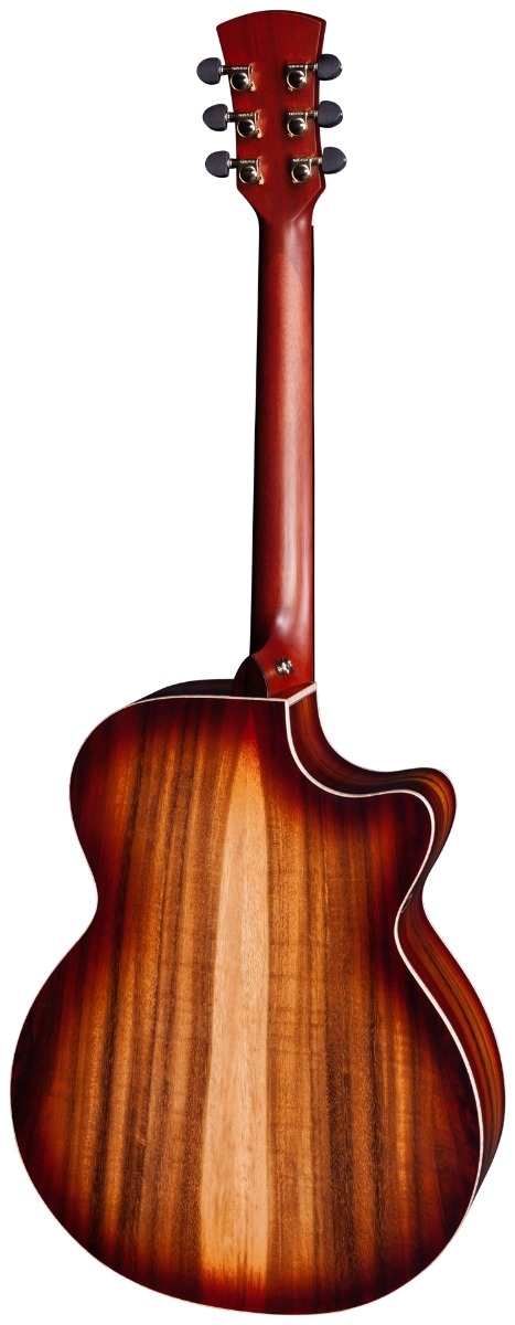Faith Blood Moon series are an exciting departure from traditional woods that are usually used. Featuring highly figured 'AAA' grade Solid Indonesian Trembesi on top, back and sides with a gloss finish, this guitar gives a harmonically powerful tone as striking to hear as to observe. Faith Blood Moon guitars are bound with Flamed Maple and feature Macassan Ebony fingerboards, headplates, heelplates, bridges and bridge pins. All Blood Moon series Faith Guitars are complete with a Faith Hardcase.