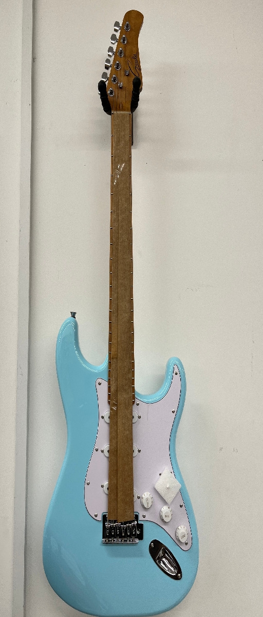 Featuring three single-coil pickups, this guitar offers a versatile array of classic tones, perfect for fans of rock and roll and beyond. Tone controls include a five-position pickup selector, a master volume knob, and two tone controls, allowing you to shape your own distinctive sound.