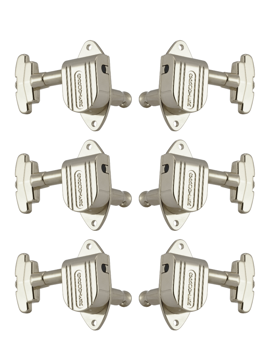 The 151 Series is distinctive in styling and quality, the Imperial™ made its first appearance in the 1970’s. The most notable feature of this unique machine head is the futuristic Three-Step button, a fresh and funky design trademarked by Grover®.