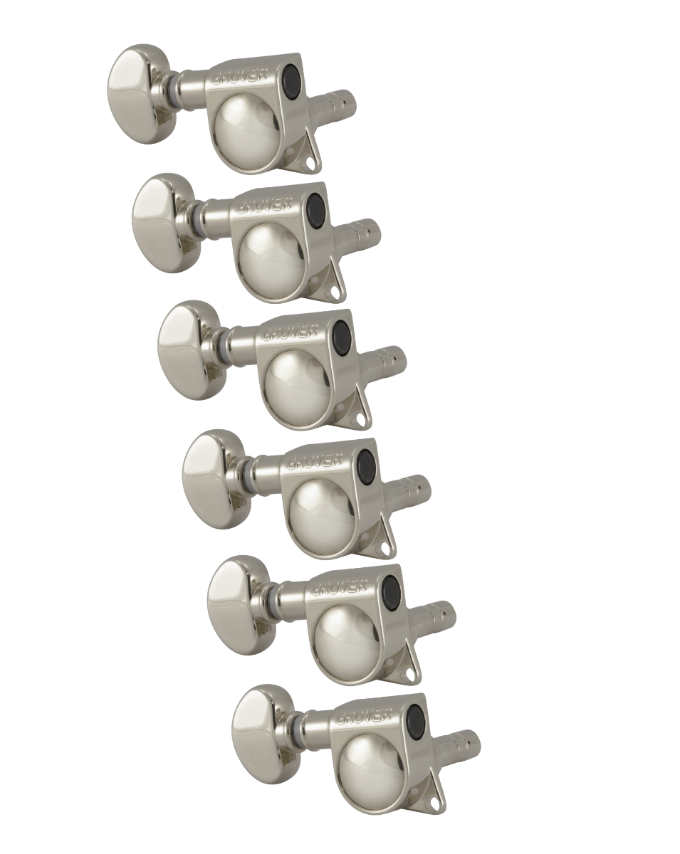 The same innovative engineering and classic design as the Original Locking Rotomatics®, but with smaller buttons for 6-in-line guitars, or for those who prefer a little more space for their fingers. Gear ratio is 18:1.
