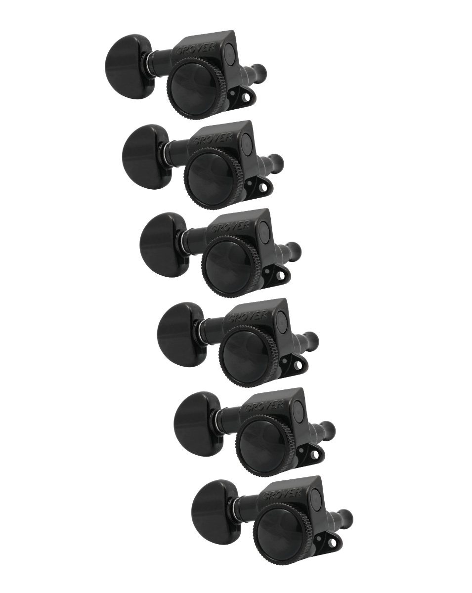 Grover Mid-Size Roto-Grip Locking Rotomatics 505 Series Black Chrome Set 6-in-Line - Left Handed