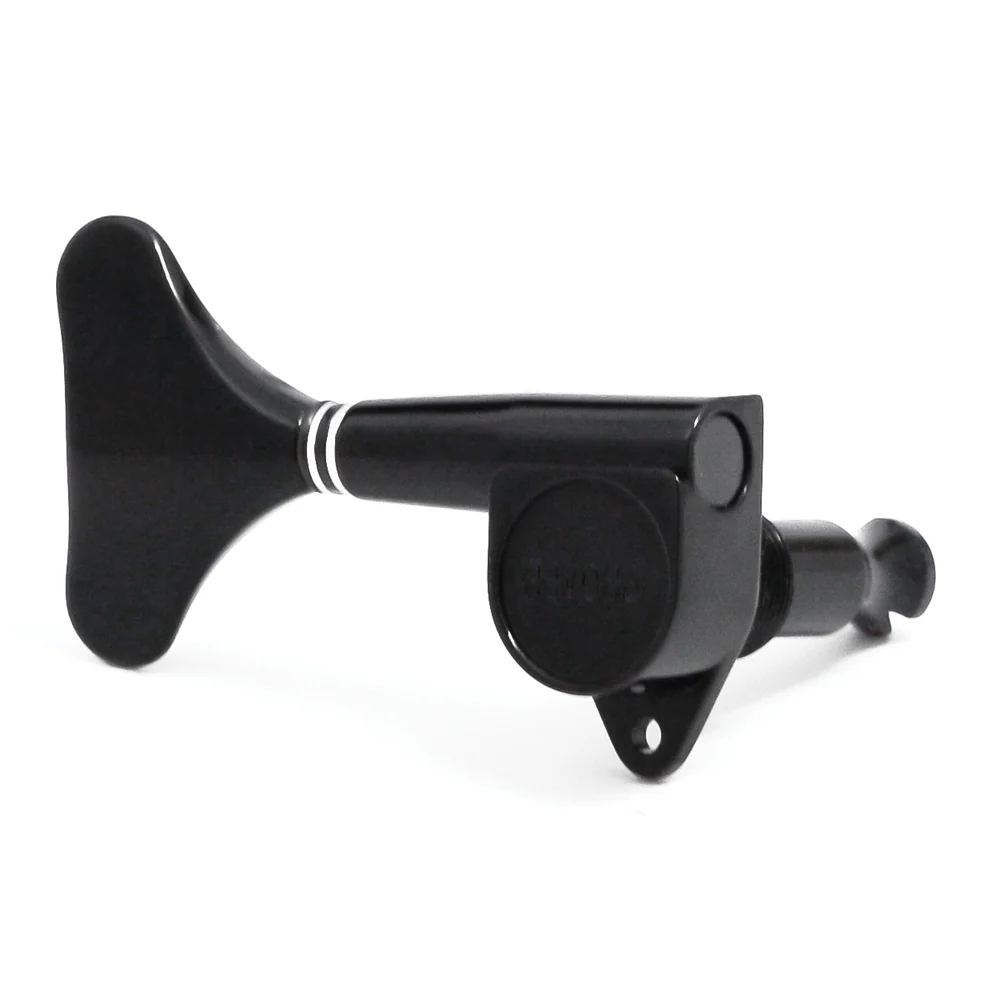 The Grover® “MINI” is lightweight, compact and durable for modern electric basses. Gear ratio is 20:1. Housing is specially machined to achieve the precise tolerance that prevents slippage and allows fine tuning. Sealed gear box has permanent lubrication that makes the MINI friction-free for life. Individually hand-tested. Screws and bushings included.