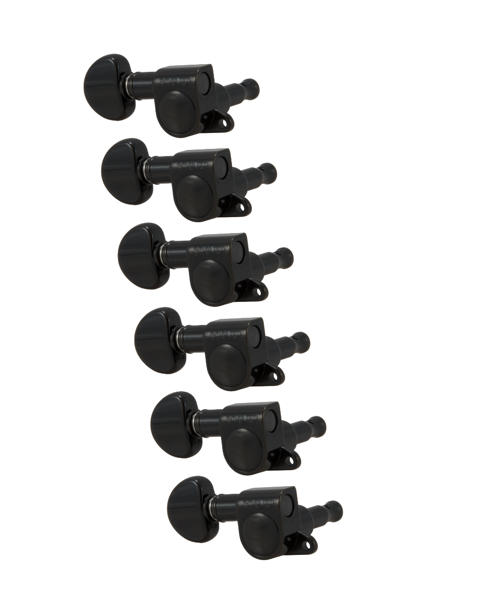 Totally professional in design and performance. Small, lightweight, this precision made machine fits guitar headpieces that will not take full size machines. The mini buttons provide more space for player’s fingers (even large fingers) to tune strings. Gear ratio is 14 to 1. Sealed in lubrication keeps the mini perfect for a lifetime! Includes 5/8” washers, bushings and wood screws.
