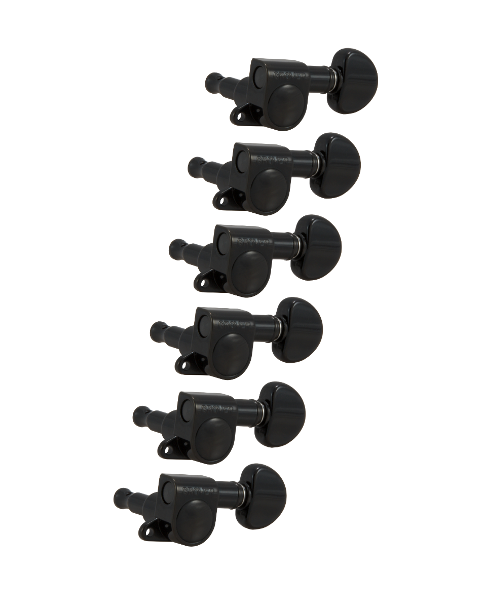 Totally professional in design and performance. Small, lightweight, this precision made machine fits guitar headpieces that will not take full size machines. The mini buttons provide more space for player’s fingers (even large fingers) to tune strings. Gear ratio is 14 to 1. Sealed in lubrication keeps the mini perfect for a lifetime! Includes 5/8” washers, bushings and wood screws.