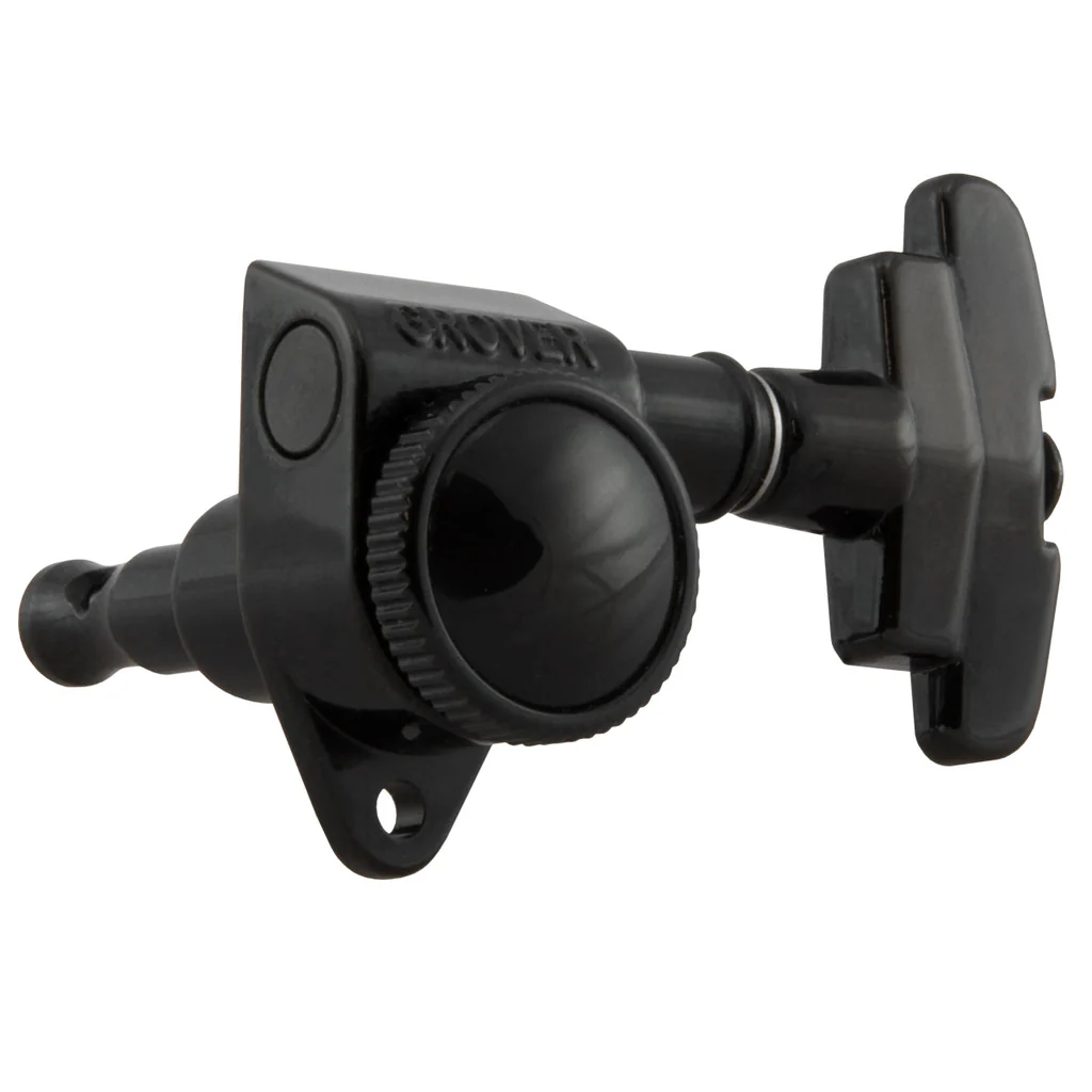 Roto-Grip Locking Rotomatics® utilize the famous 18:1 Rotomatic® design with a “thumb screw” mechanism which locks the string into place. Insert the string through the post hole, wrap around once, then lock by tightening with the thumb screw. Perfect replacement for the most standard machine heads. Includes all mounting hardware.