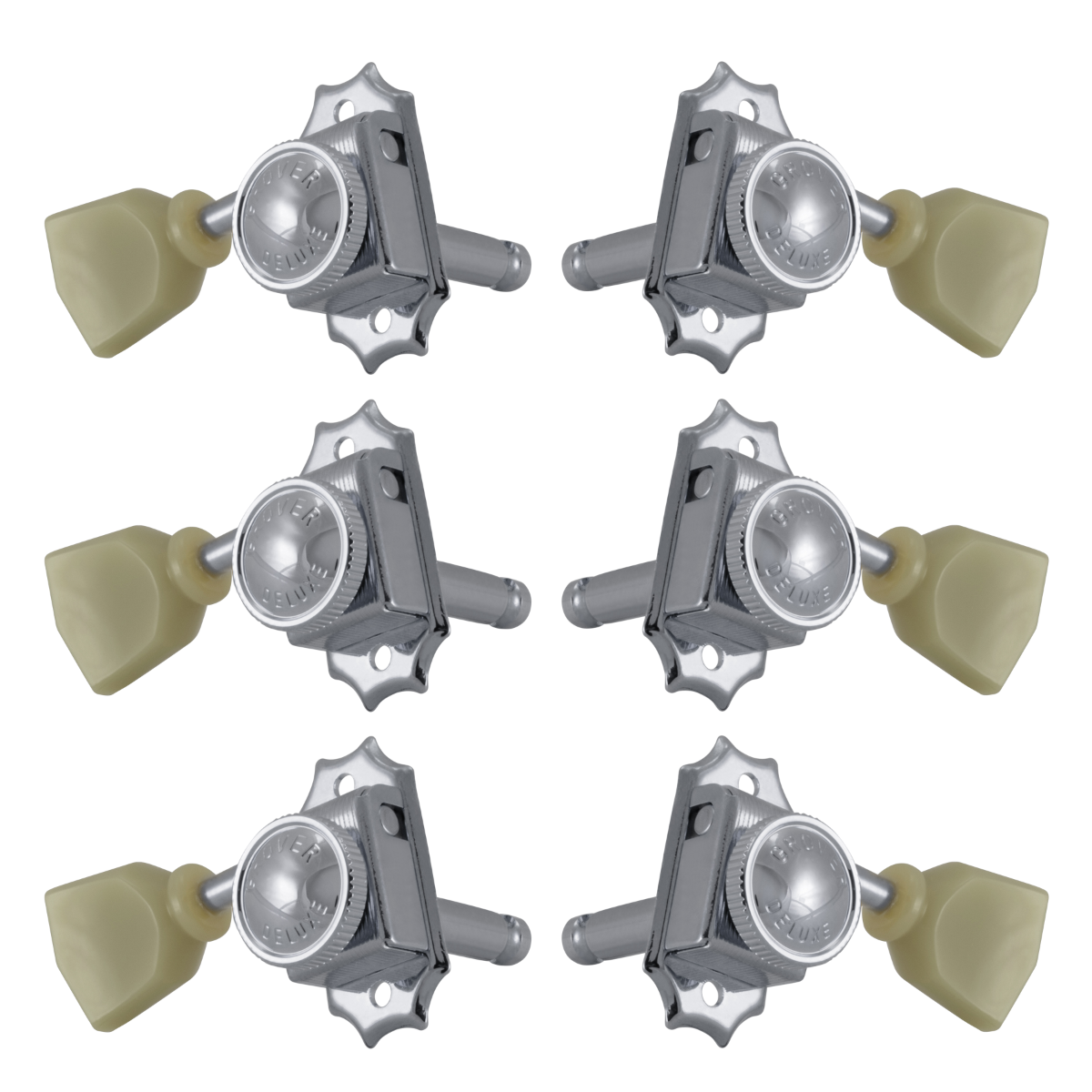 Mechanically engineered to the most precise standards of excellence, with the classic look of vintage styling, Grover’s Vintage 533 locking series come with a “thumb screw” mechanism, which locks the string into place. Insert the string through the post hole, wrap around once, then lock by tightening with the thumb screw. Worm and gear are cut to mesh perfectly, thereby eliminating backlash and slippage. The housings are self-lubricating for a lifetime of trouble-free service. 15:1 gear ratio.