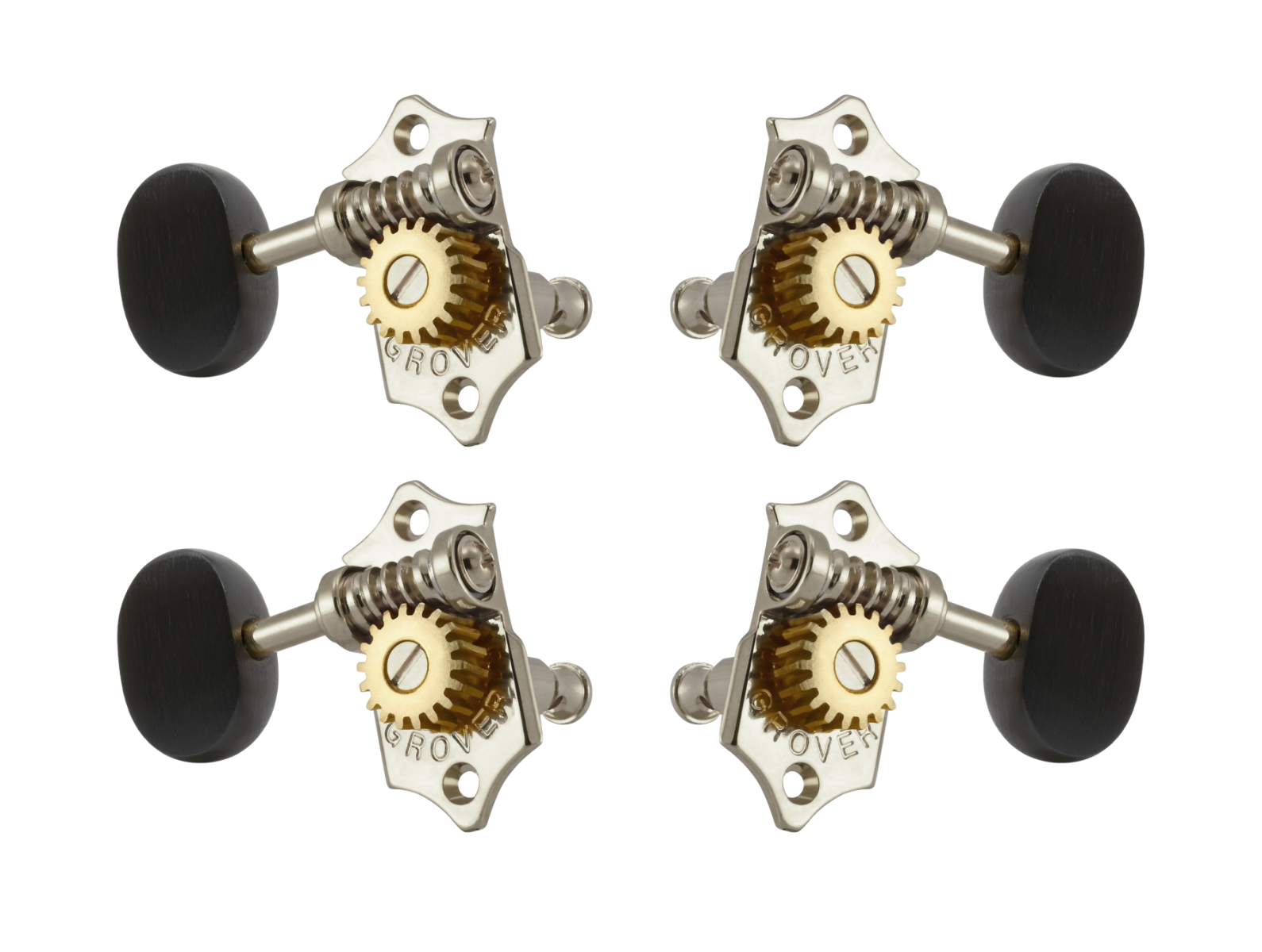 The Original Grover® Sta-Tite™ machine heads are now available for Ukuleles with an 18:1 gear ratio for precise tuning, still with the classic styling and butter bean button of the original Grover® Sta-Tite™ machine heads. The new U99-18N comes with a .827” (21mm) long post. Heavily nickel plated. Set of four includes bushings and wood screws. With a 18:1 gear ratio.