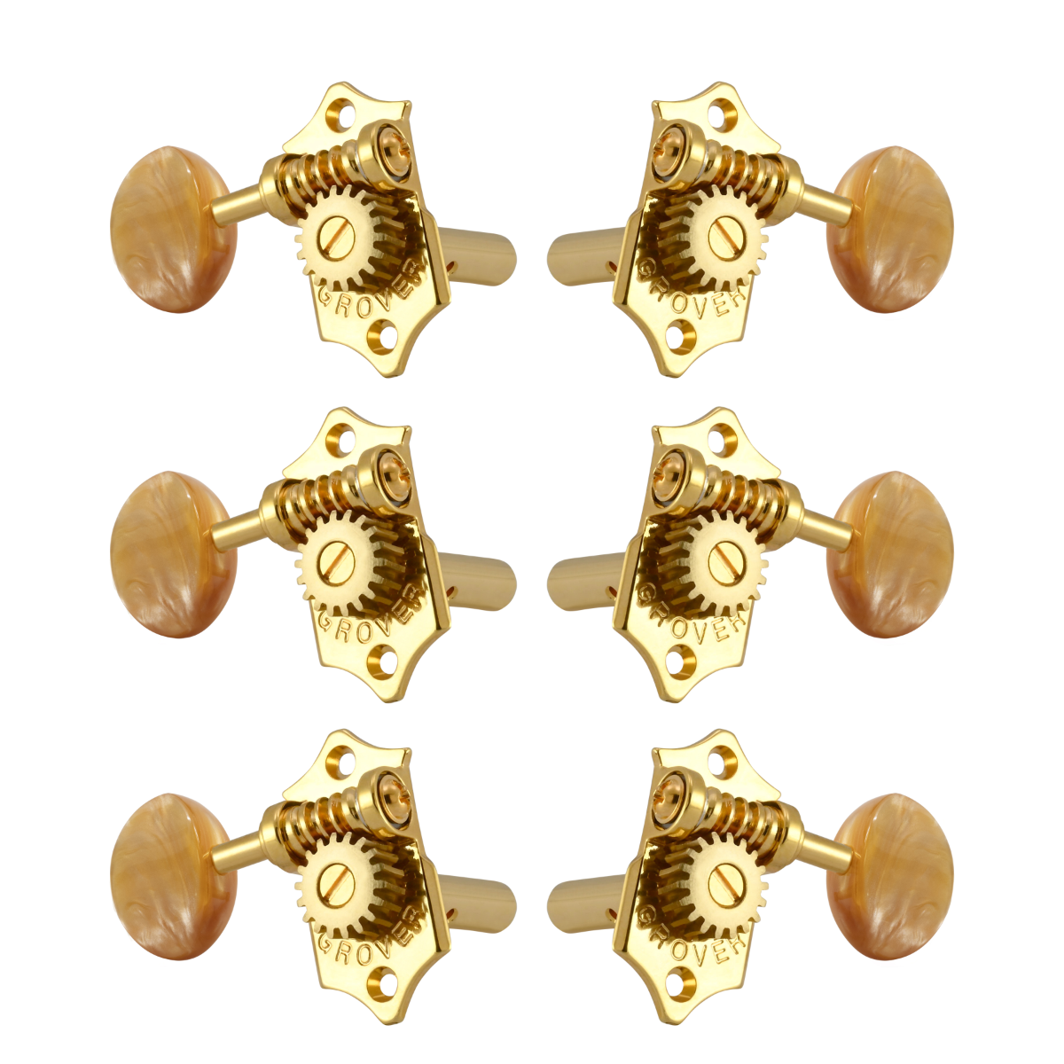 The 18:1 gear ratio Grover® Sta-Tite™ machine head. The classic styling of the Sta-Tite™ returns with the Grover® name. The butter bean button identifies this as the original. A 18:1 gear ratio provides precise tuning. Wood screws, washers, and bushings included.