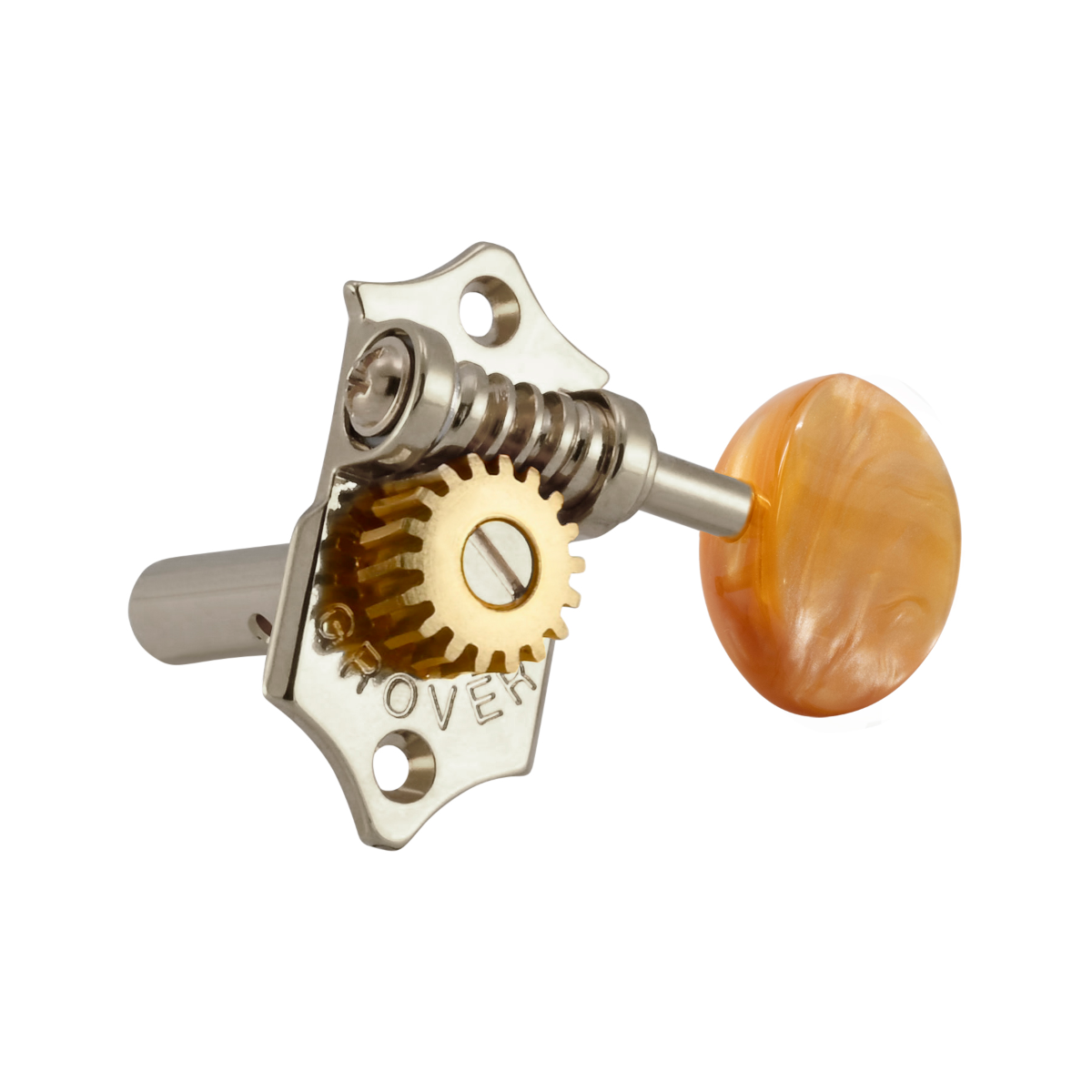 The 18:1 gear ratio Grover® Sta-Tite™ machine head. The classic styling of the Sta-Tite™ returns with the Grover® name. The butter bean button identifies this as the original. A 18:1 gear ratio provides precise tuning. Wood screws, washers, and bushings included.