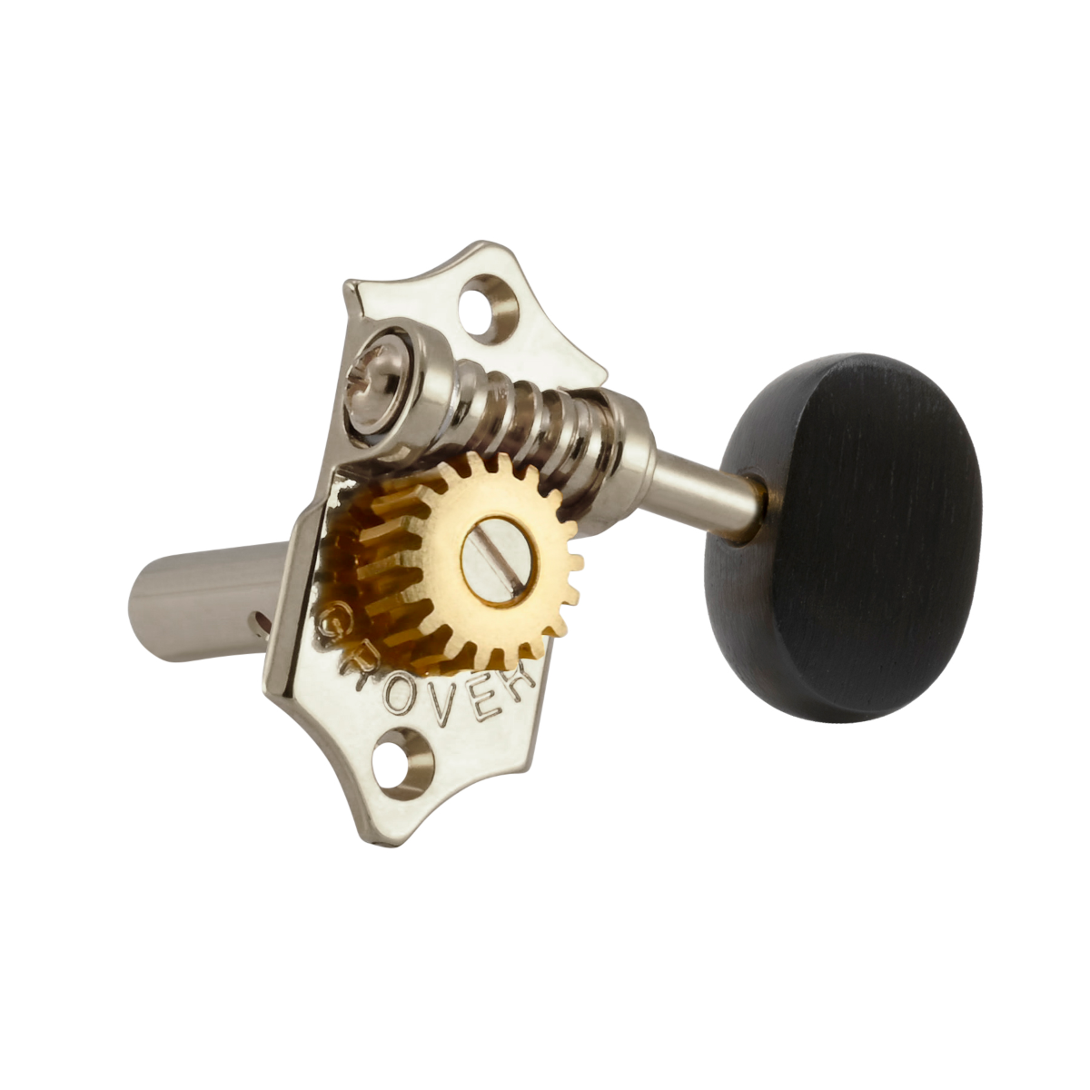 The 18:1 gear ratio Grover® Sta-Tite™ machine head. The classic styling of the Sta-Tite™ returns with the Grover® name. The butter bean button identifies this as the original. A 18:1 gear ratio provides precise tuning. Wood screws, washers, and bushings included.