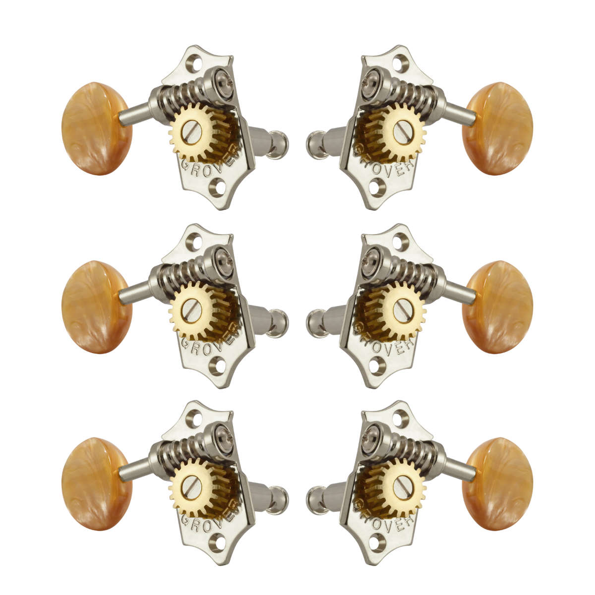 The 18:1 gear ratio Grover® Sta-Tite™ machine head. The classic styling of the Sta-Tite™ returns with the Grover® name. The butter bean button identifies this as the original. A 18:1 gear ratio provides precise tuning. Wood screws, washers, and bushings included.