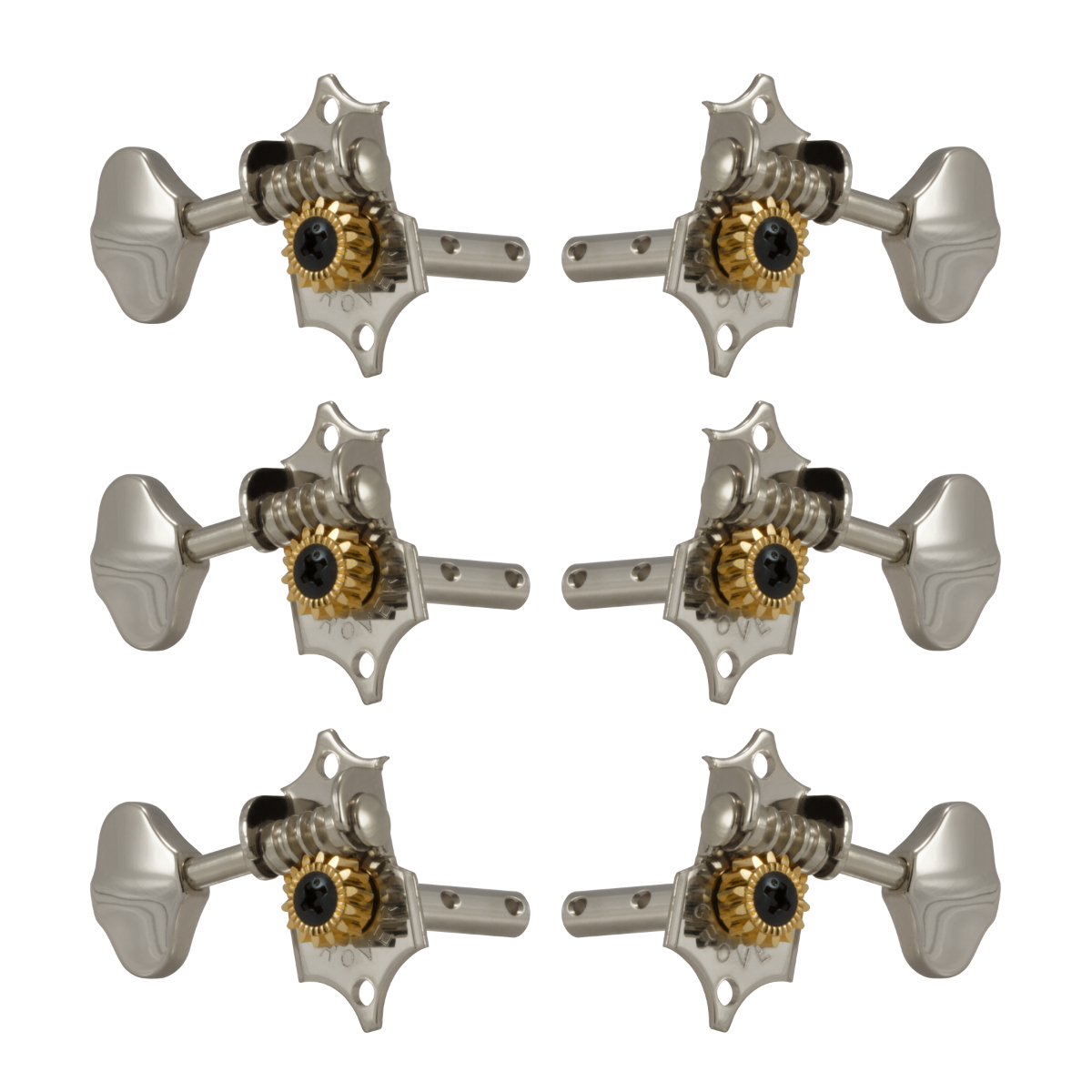 The Original Grover® Sta-Tite™ machine head. The classic styling of the Sta-Tite™ returns with the Grover® name. The butter bean button identifies this as the original. A 14:1 gear ratio provides precise tuning. Wood screws, washers, and bushings included.