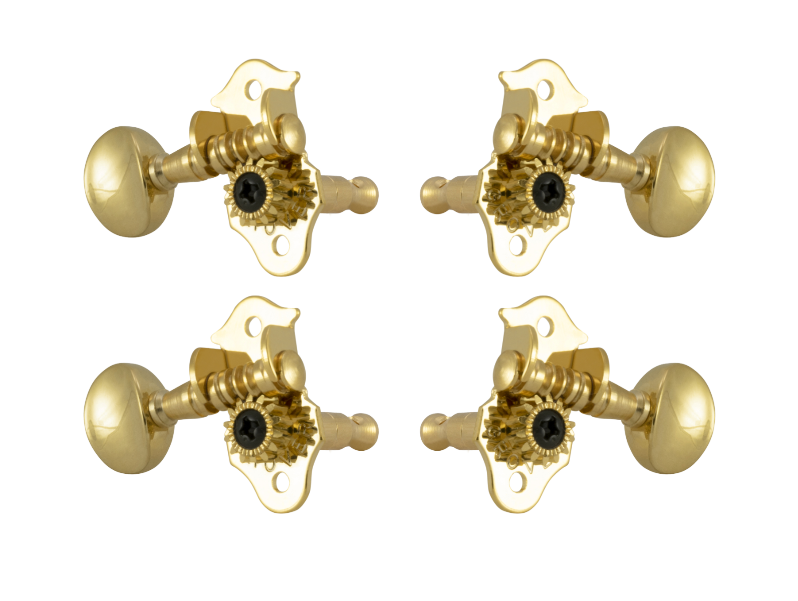 The one-piece back plate, brass gear, die cast button and knurled bushings are the same as those used on the Sta-Tite™ guitar machine head. The string post has been shortened to 1 inch with the string hole .775” from the back of the base. 14:1 gear ratio provides for accurate tuning. Includes bushings and wood screws.