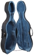 Lightweight styrofoam cello case. Features Internal Padded plush blue lining, Accessory Pocket, Detachable Straps Included, Rolling wheels, 2 bow holders.