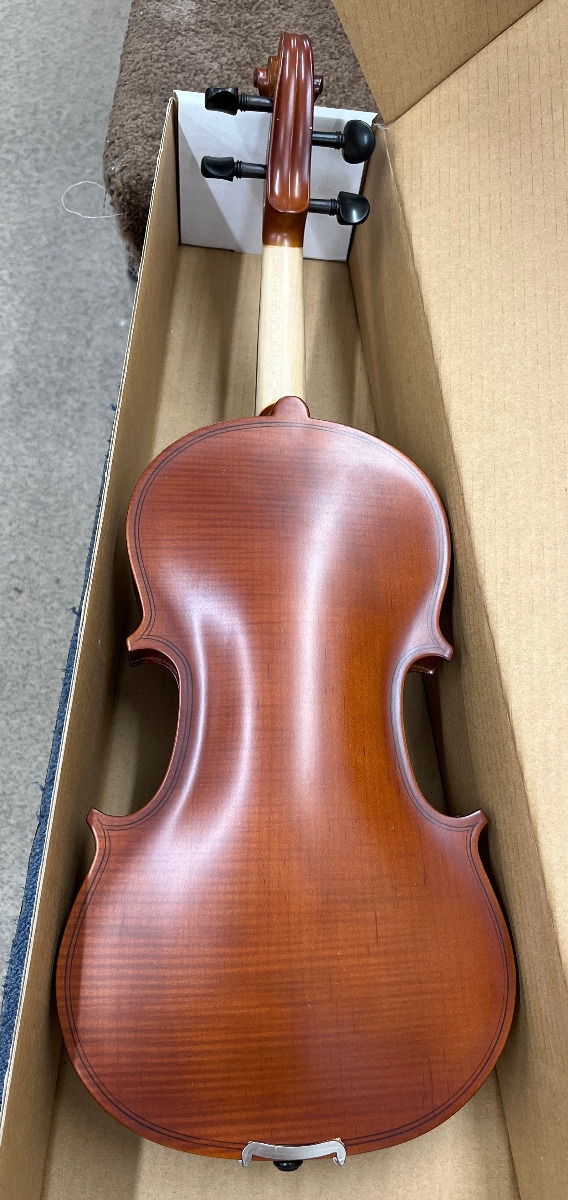 Laminated Spruce table, Laminated Maple back and ribs with graphic flame, Hardwood fingerboard and pegs, Alloy tailpiece with adjusters, Composite chin rest.