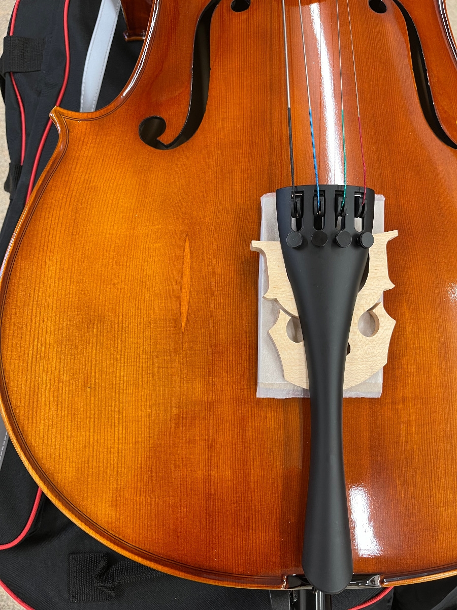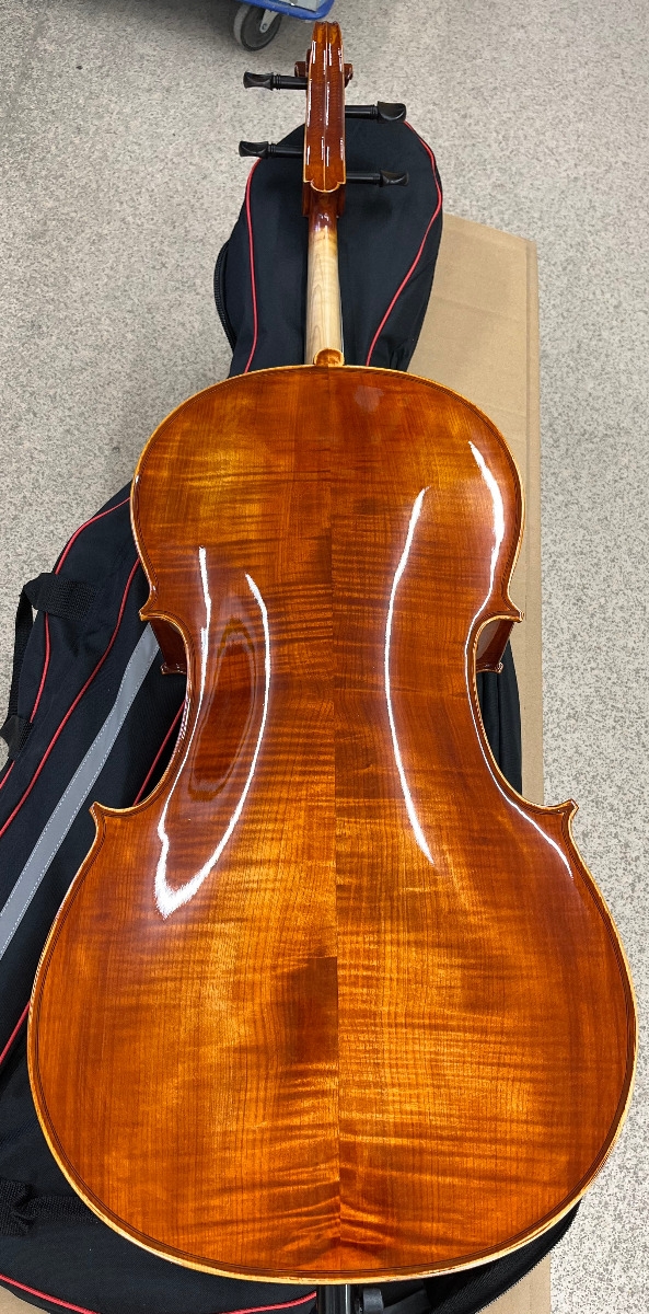 Hand-Carved, Solid Straight-grained Spruce top; Hand-Carved, Solid Flamed Maple Back, Ribs, Neck and Scroll; Ebony Fingerboard and Pegs; Seasoned Maple Bridge; Lightweight Tailpiece; Carbon Fibre Endpin; Steel Strings.