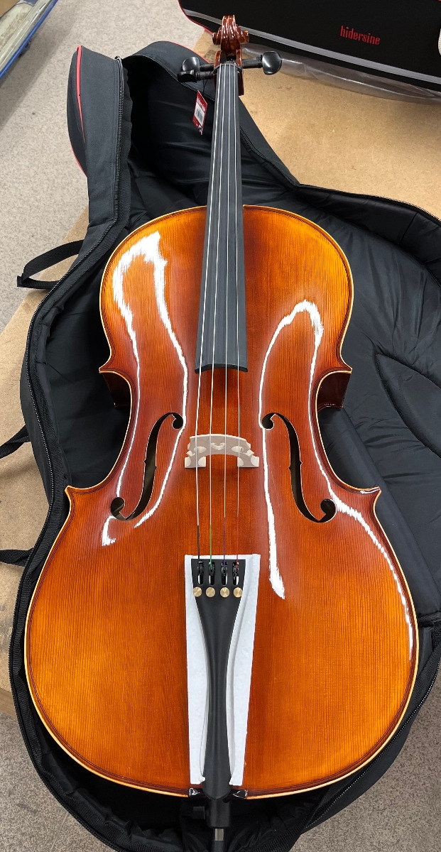 Hand-Carved, Solid Straight-grained Spruce top; Hand-Carved, Solid Flamed Maple Back, Ribs, Neck and Scroll; Ebony Fingerboard and Pegs; Seasoned Maple Bridge; Lightweight Tailpiece; Carbon Fibre Endpin; Steel Strings.