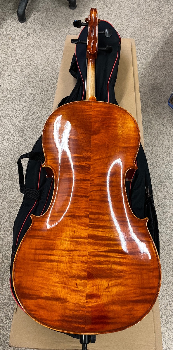 Hand-Carved, Solid Straight-grained Spruce top; Hand-Carved, Solid Flamed Maple Back, Ribs, Neck and Scroll; Ebony Fingerboard and Pegs; Seasoned Maple Bridge; Lightweight Tailpiece; Carbon Fibre Endpin; Steel Strings.