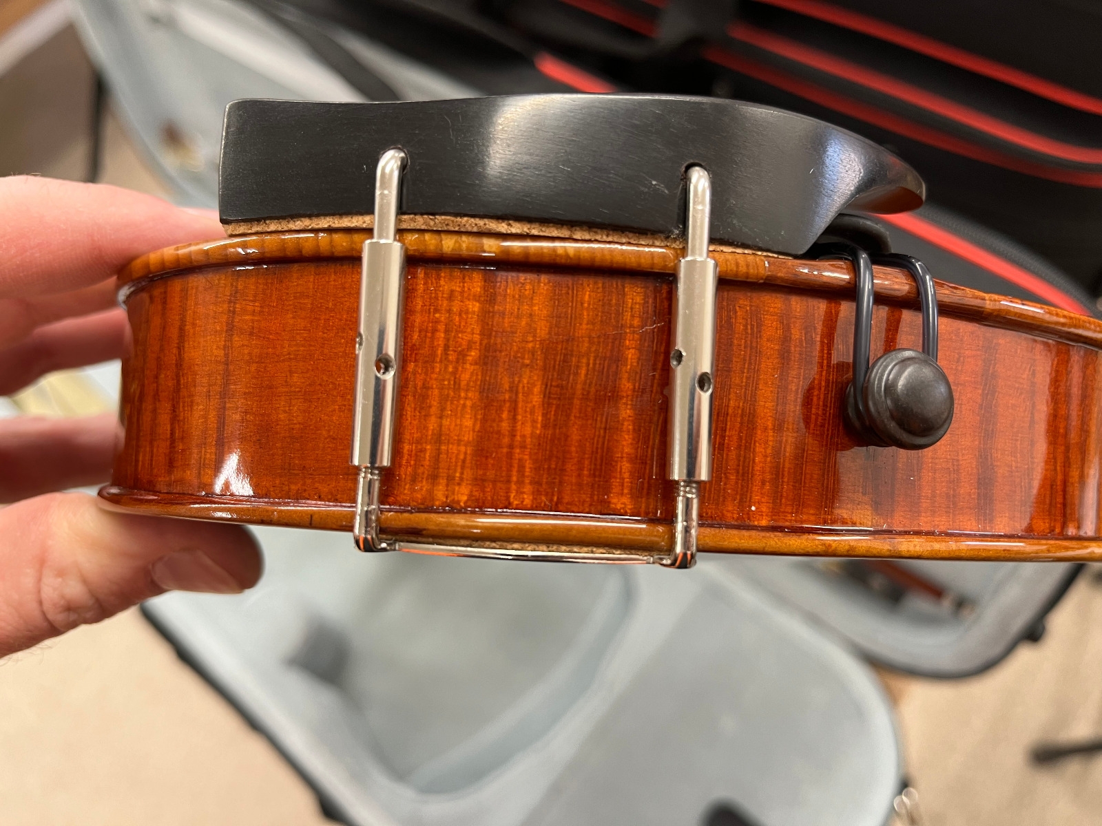 Crack in rib by chin rest.