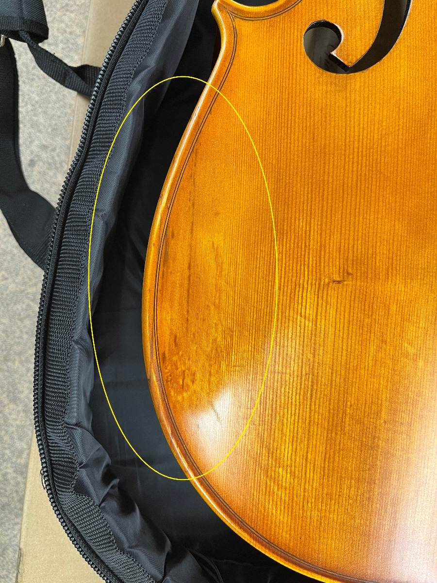 Padded gigbag/carry case with bow holder and accessory pockets.
