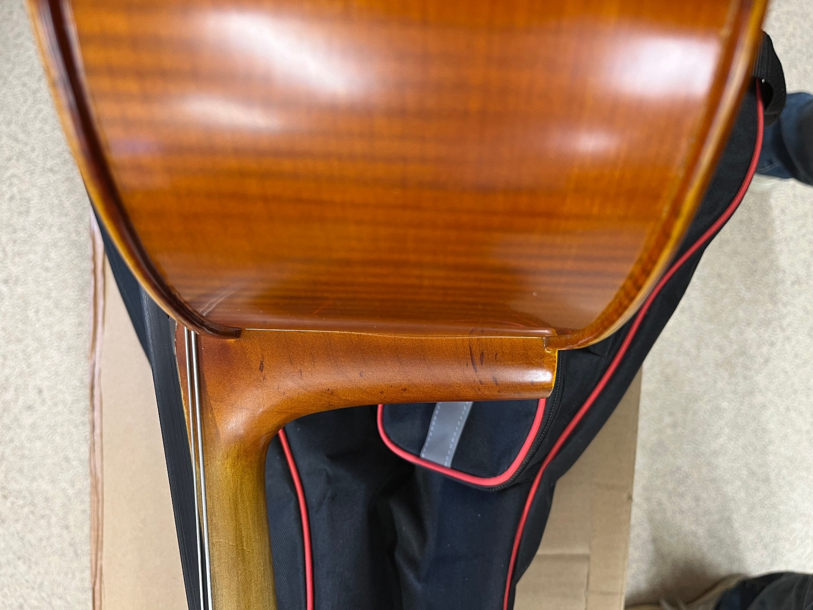 Padded gigbag/carry case with bow holder and accessory pockets.