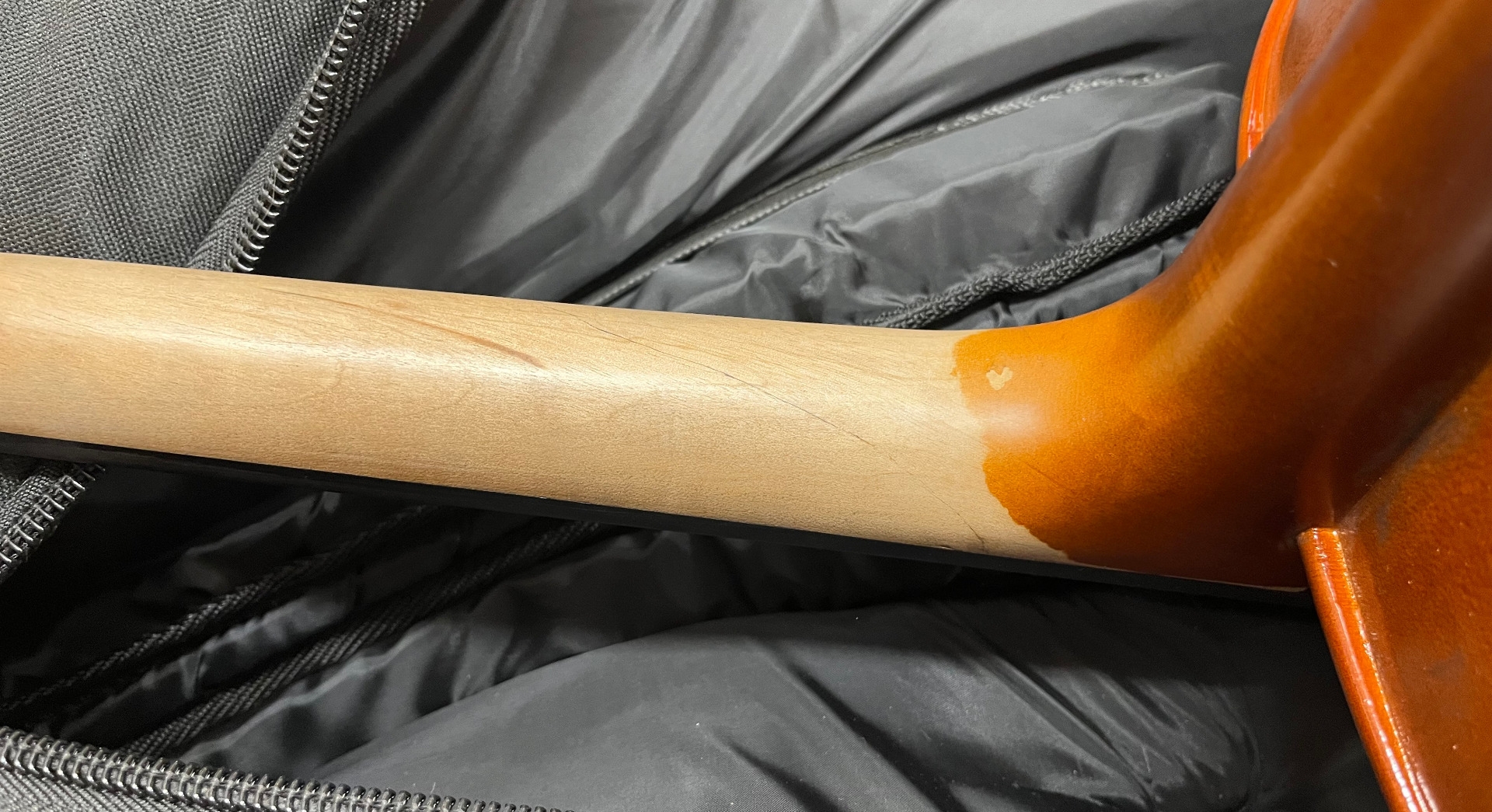 Padded gigbag/carry case with bow holder and accessory pockets.