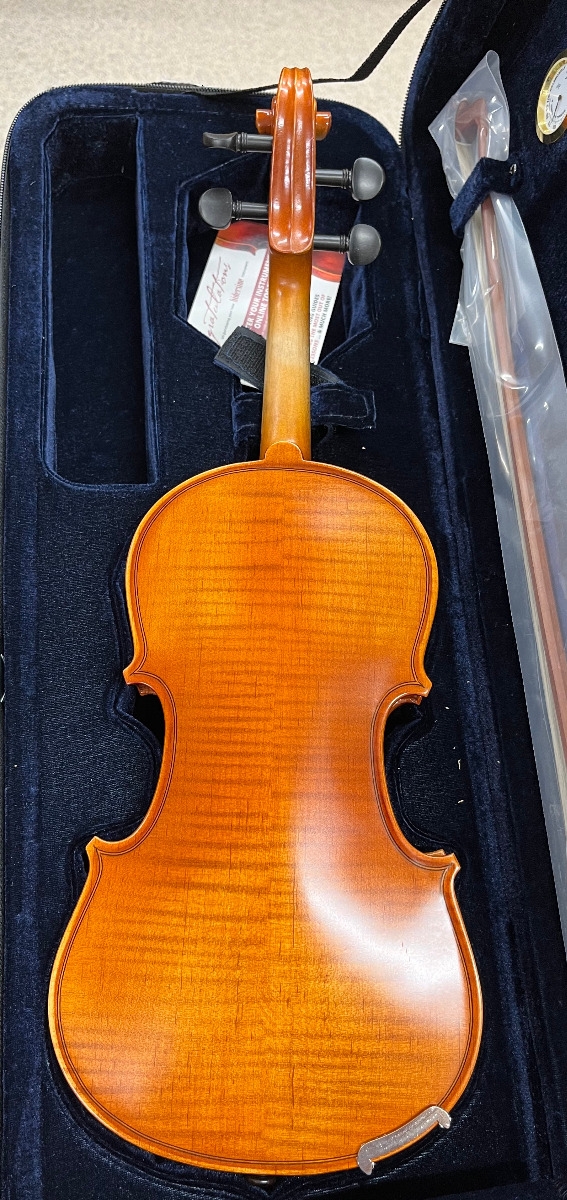 Solid Spruce Table, Solid Maple back and ribs with graphic flame, Carved Maple Neck, Genuine Ebony fingerboard and pegs, Alloy Tailpiece.
