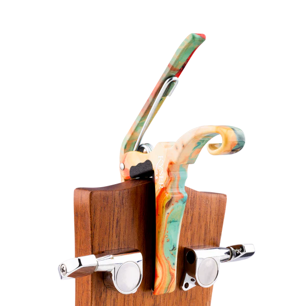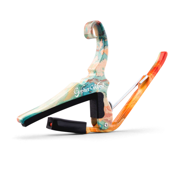 The collaboration of Gopherwood Guitars and Kyser® brings together the beauty of various forms of Korean artistry into a series of capos that are as beautiful as they are functional. Transpose your guitar without the hassle of alternate tunings or chord fingerings—even during a performance.