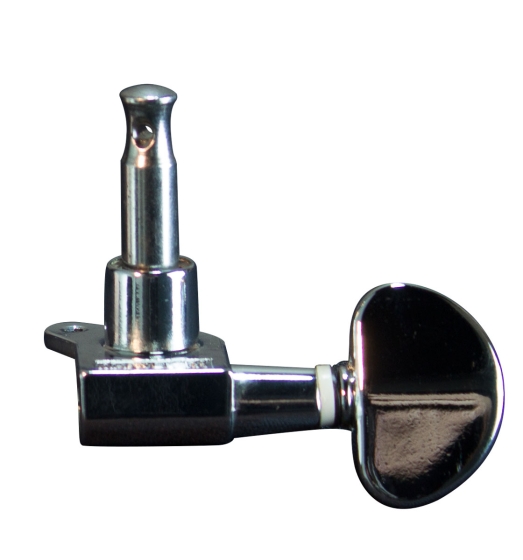 Chrome plated, high ratio machinehead as fitted to all Faith Naked models. This machinehead is for the Bass side of the guitar - i.e. the Low E, A and D.