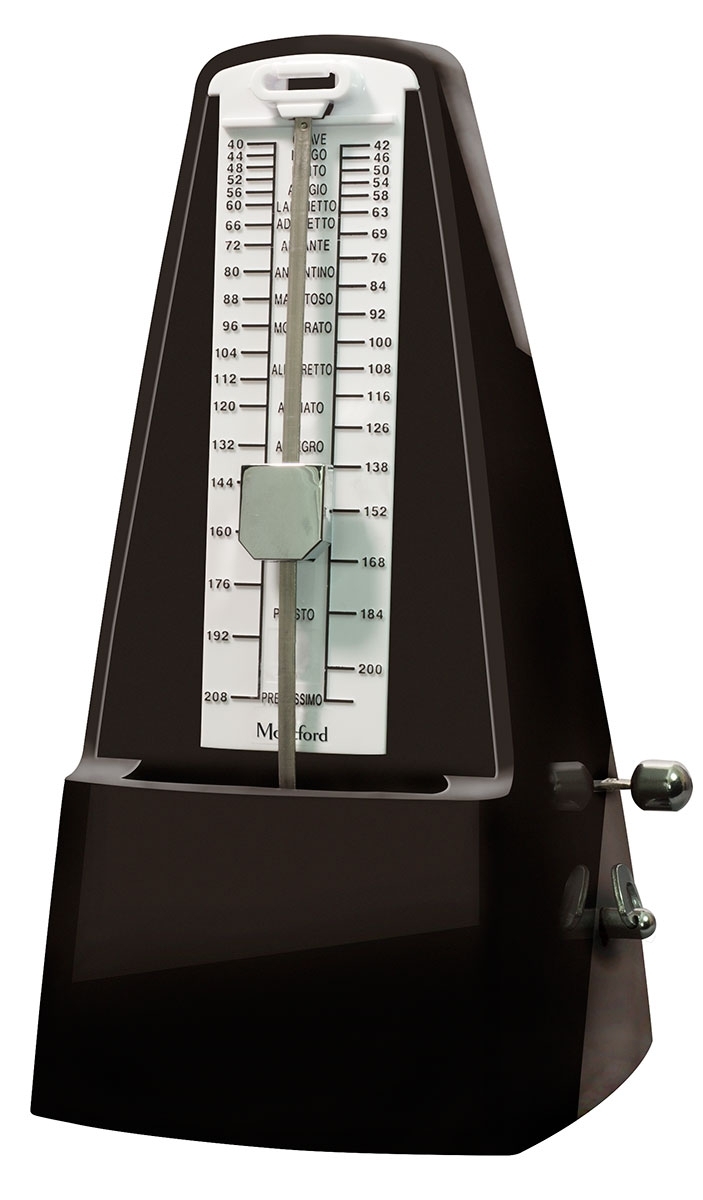 Classic Pyramid design metronome. With bell. Clear plastic removable front cover. Gloss Black plastic finish. 0.5kg