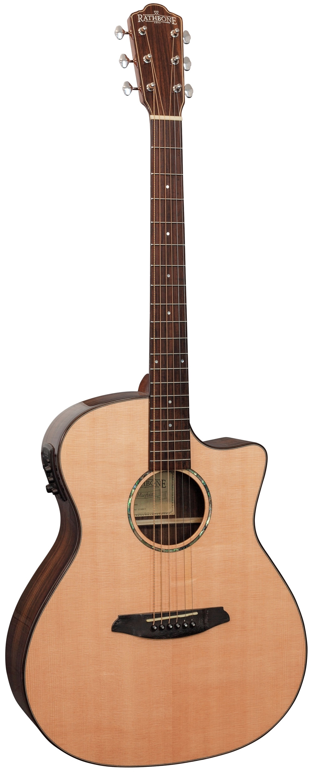The perfect all-rounder, the No.3 has the same scale length as the Orchestra Model but body dimensions closer to a classic dreadnought. The larger body cavity naturally produces greater bass tones, but without sacrificing clarity, and that's the beauty of the Grand-Auditorium. However, a larger body does not mean an unwieldy instrument. Far from it, in fact. The beautiful curves around the waist of the Rathbone No.3 ensure the guitar will sit comfortably on a knee or hang perfectly from your shoulders.