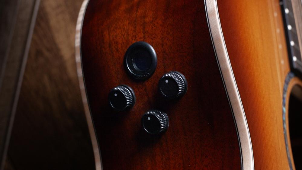 Visually, the guitar is equally captivating. Its sunburst finish showcases rich reds and burnt oranges melting into warm yellows, beautifully highlighting the natural grain of the torrefied spruce. Premium appointments include solid high-figure flamed maple binding, a figured ebony pickguard, fingerboard, and bridge, with a bone nut, saddle, and bridge pins.