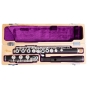 - Case: Cherrywood case with purple lining. Includes white gauze cloth and wooden cleaning rod.